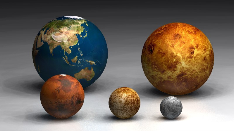 下段左から「地球」「金星」「火星」「水星」「冥王星」