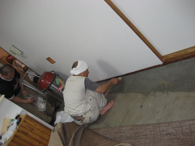 取り敢えず床に溜まった水を吸い出し終えた所です。