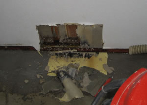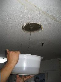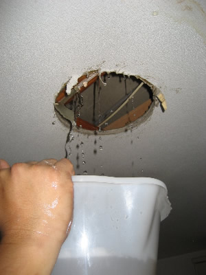 漏れを止めて、水を吸い出して、後は乾かすだけ!となっているのに、階下の天井からの漏水は一向に停まる気配がないそうで、取り敢えず天井に穴を開けて水を抜くことに。
