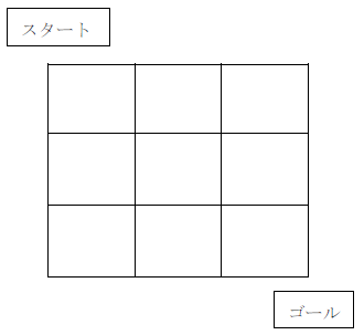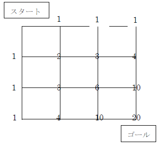 スタートからゴールまで最短距離で行く方法は何通りでしょう?というものです。
