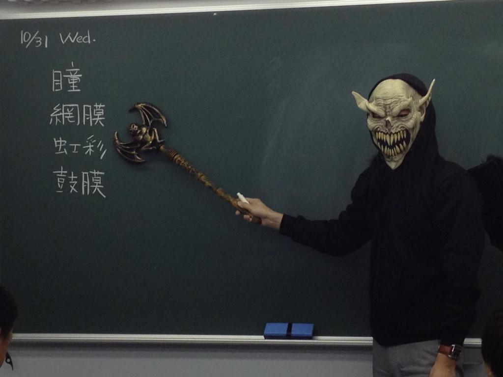 初めて見た生徒に、「大人が仮装ってなんか変〜。」と言われるのに対し、