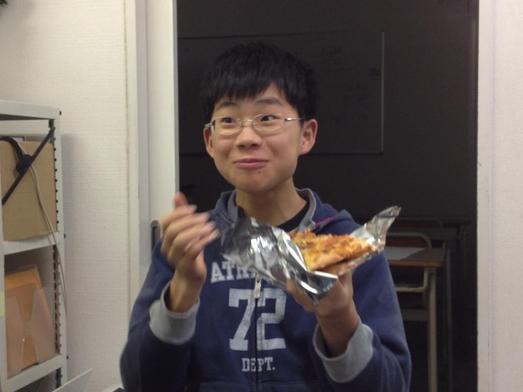 後ろでは、まだ終わらない人がいる中、おいしそうにほおばる。笑