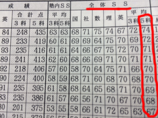 20名中の結果ですが!見て欲しいのは赤で囲った偏差値。