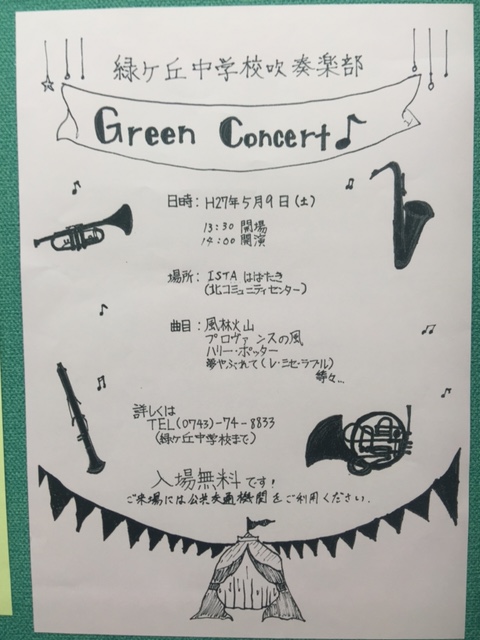 去年も行かせてもらった緑ヶ丘中学の「グリーンコンサート」。通称グリコンです。