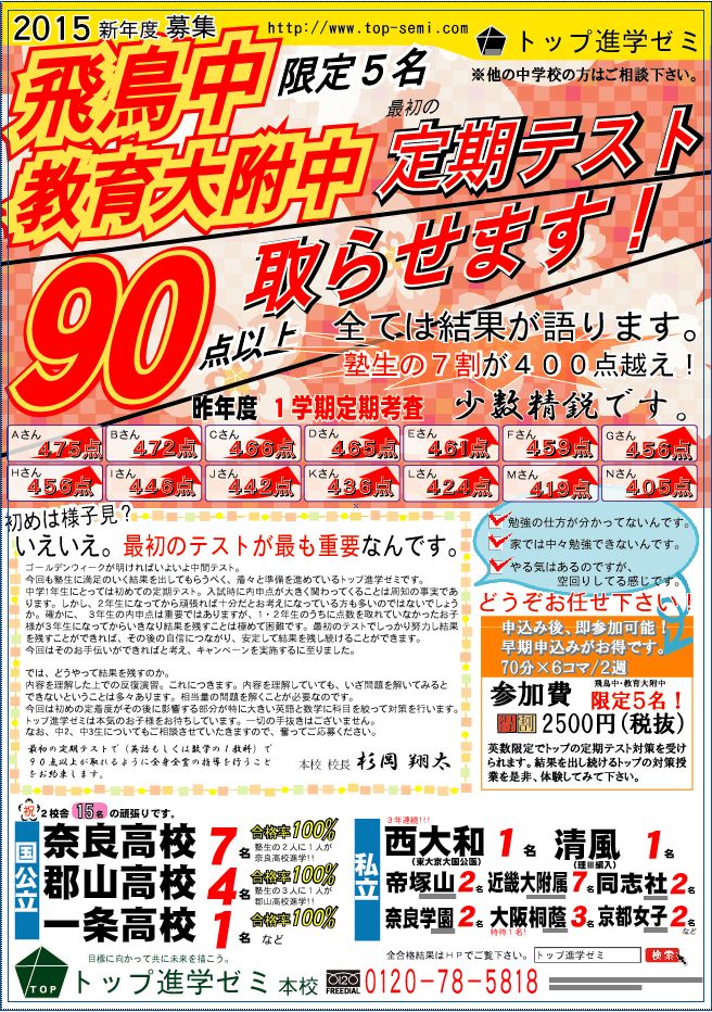 言われたことさえしっかりとやってもらえれば、短期間で成果をあげる方法があるのです。是非、その定期テスト対策を体験してもらおう!というキャンペーンなのです。
