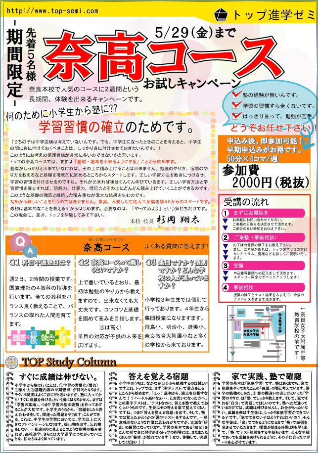 そして、どうせ体験をやんだったら、最近、問い合わせの増えている「奈高コース」も一緒に体験してもらおう!って、ことで、小学生の体験も一挙にやっちゃいます!笑